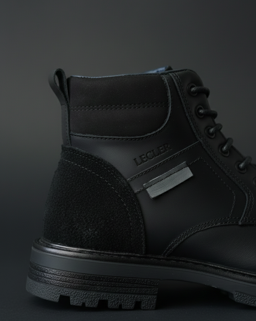 Estas botas urbanas de estilo casual de la marca LECLER  en color negro están diseñadas para ofrecer resistencia, confort y un look moderno. Fabricadas en un material de acabado liso tipo cuero, cuentan con un diseño limpio y estructurado que combina funcionalidad con estética minimalista. Su caña media brinda soporte al tobillo y está complementada con un acolchado suave que mejora la comodidad en cada paso.