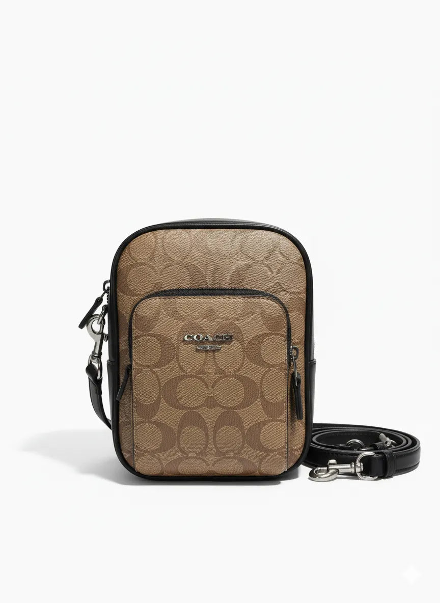 Es un bolso cruzado masculino , que combina la icónica lona con monograma en tonos neutros con detalles en piel negra, resultando en un accesorio práctico, moderno y reconocible-