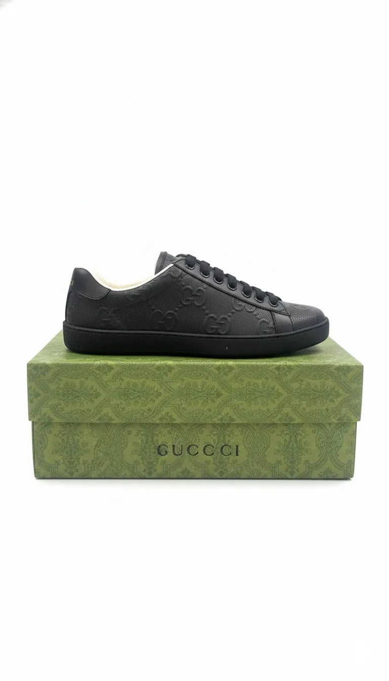 Diseño elegante y atemporal, estas zapatillas reflejan la sofisticación moderna con un acabado completamente negro y el emblemático patrón grabado que aporta distinción y estilo. Confeccionadas en materiales de primera calidad, ofrecen comodidad, durabilidad y un toque de lujo en cada paso. Perfectas para quienes buscan un calzado versátil que combine moda y exclusividad en cualquier ocasión.