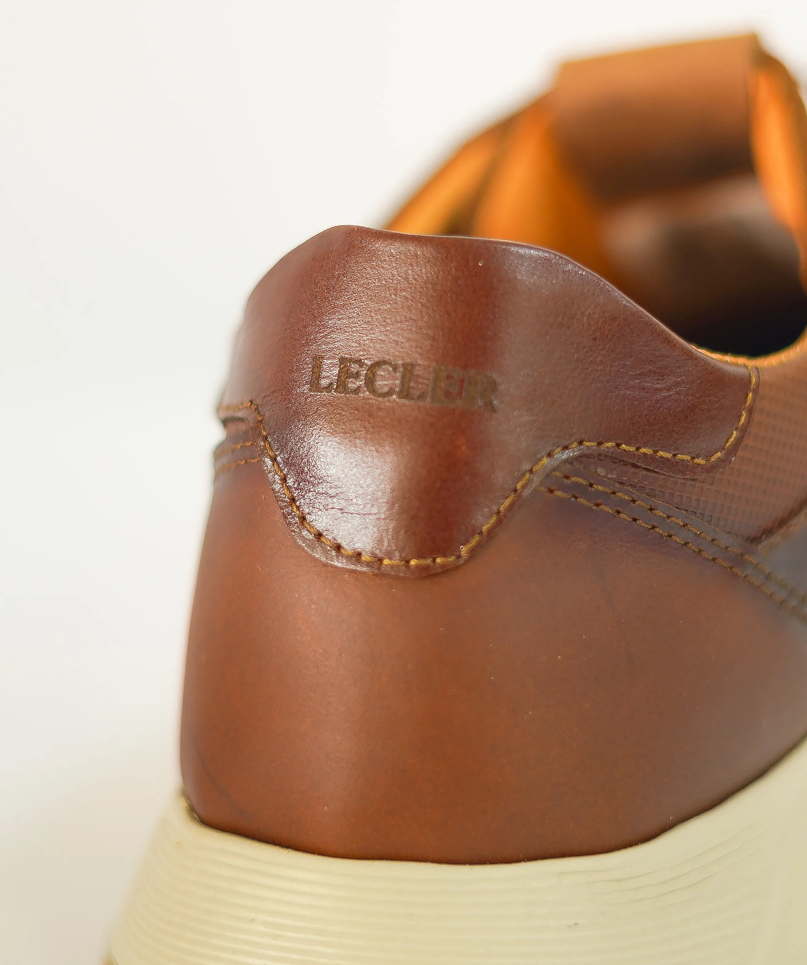 Zapato Hantom Lecler en cuero marrón, con acabado artesanal y suela en contraste que combina estilo y comodidad para el día a día, formal y sofisticado